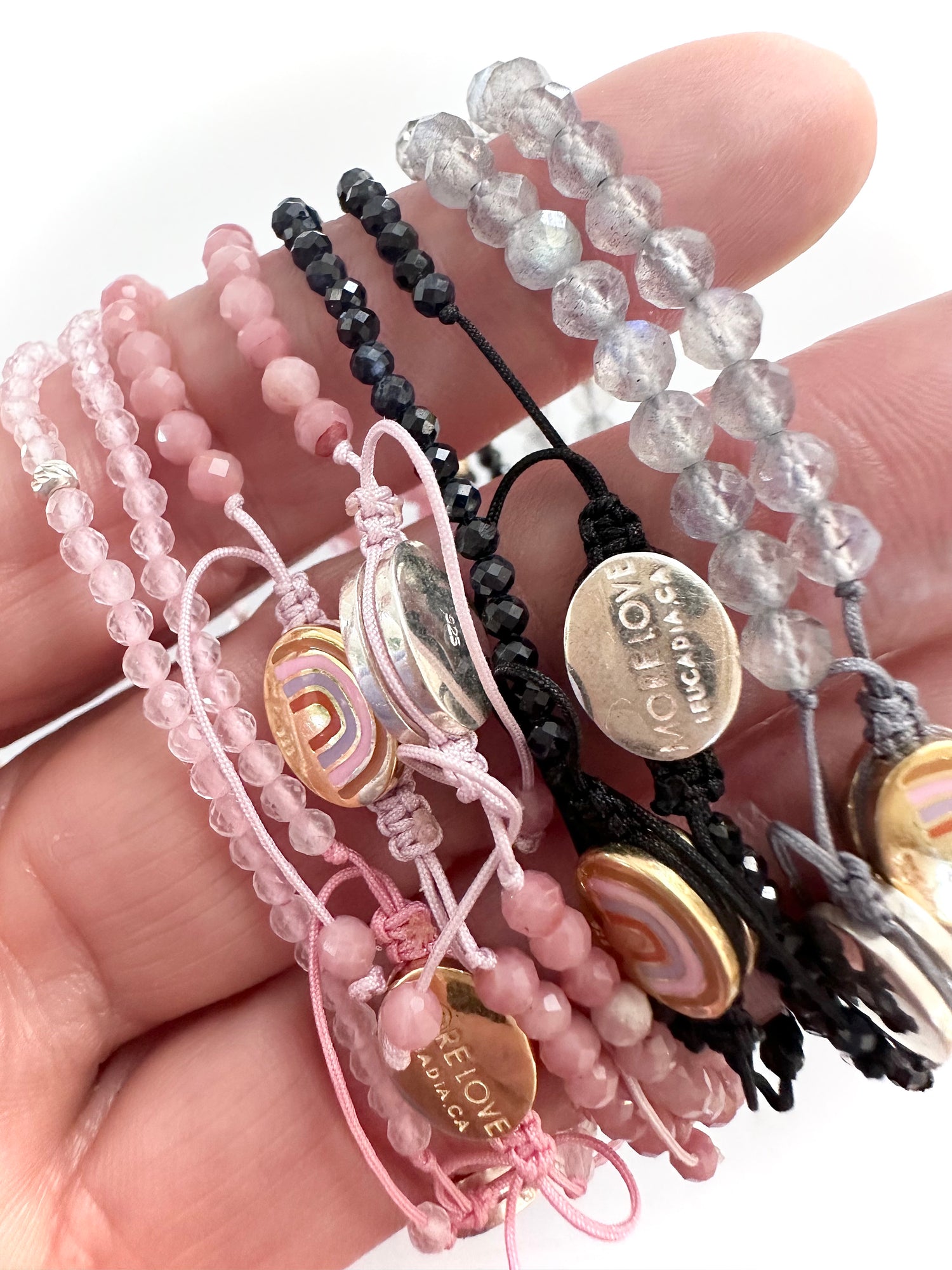 Each More Love bracelet is made from healing crystals. Crystals hold memory within their atomic structure and each have unique properties. There’s a crystal for everything imaginable. Stack and layer bracelets by pairing with crystals that speak to your heart. Because the universe is madly in love with you .. just as it should be.
